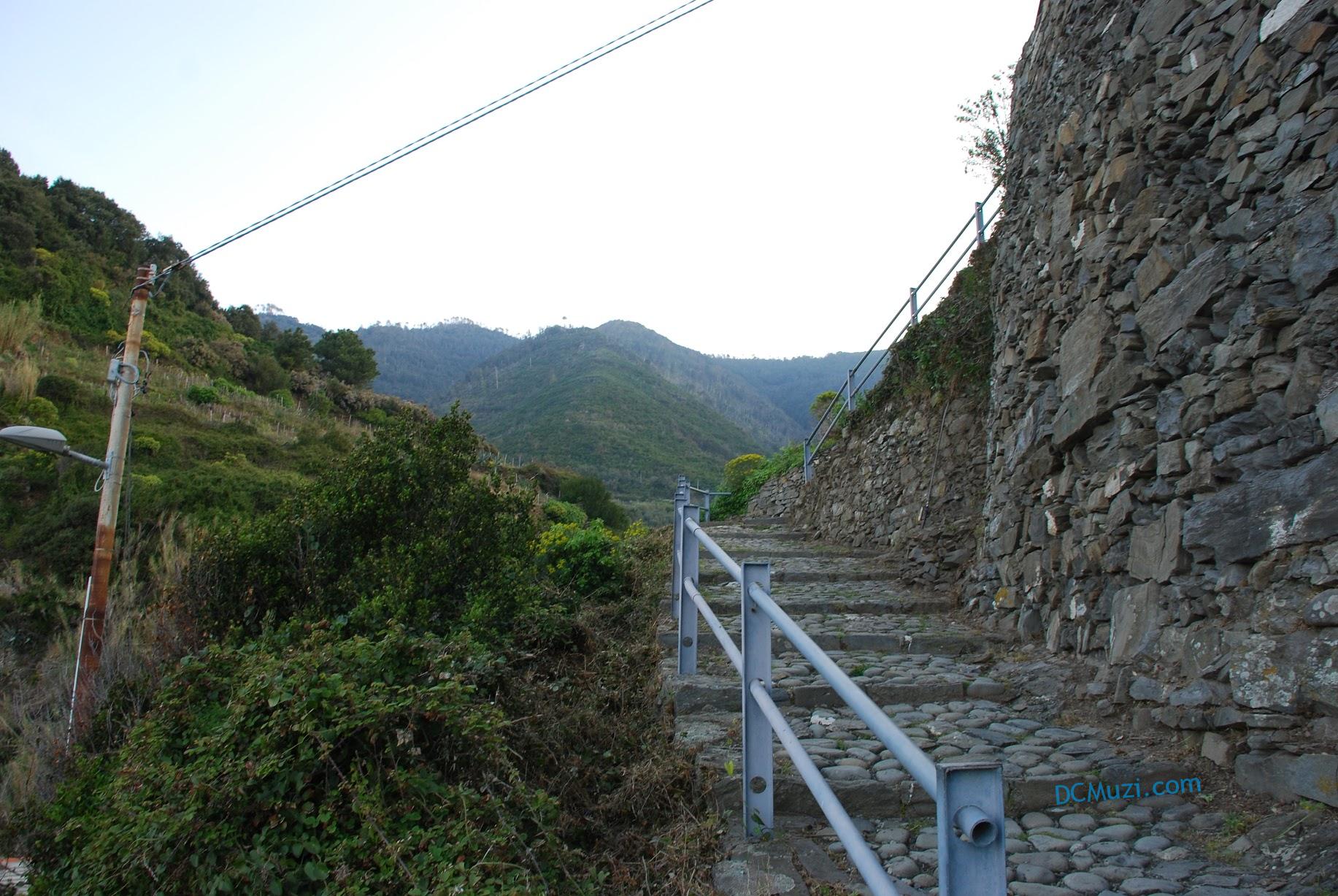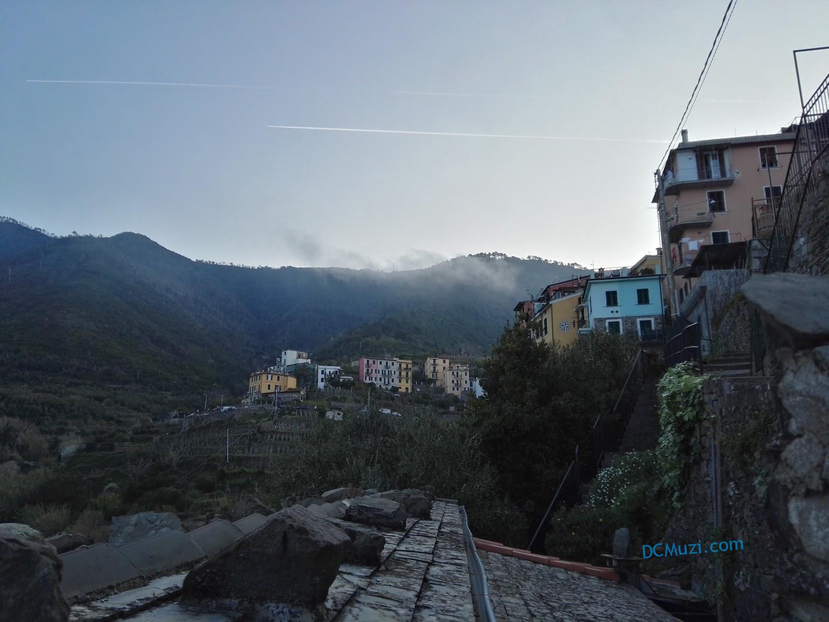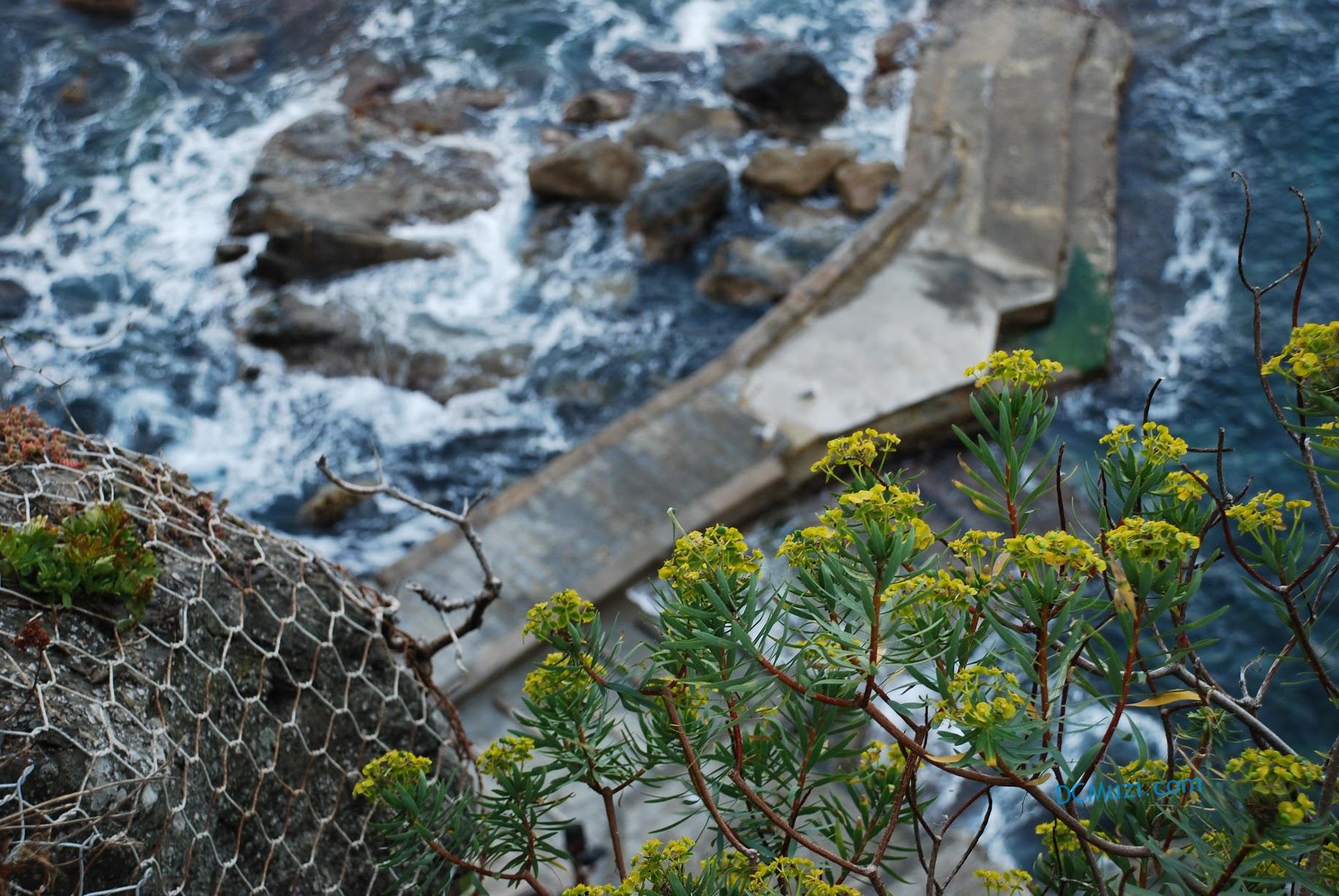 不知不觉走到一片开阔地,而前面竟然是海。我在corniglia这个小镇还从来没有见过海,更不知道原来这里也可以下到海边的,带着几分惊喜,我继续向前走去,远处的山隐约透着一丝清晨的阳光,让我感受到了一种朦胧的美感,而清晨的海边伴随着湿气和清爽,让我精神为之一震,便快步迈下台阶,这里也是一段如同走到市中心的路一样,又是来回的台阶路,而越来越靠近大海,越让我感觉兴奋。